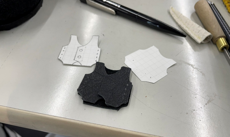 その場で型紙をつくり裁断して縫う。ベスト自体には金具は使わずシンプルに仕上げました。