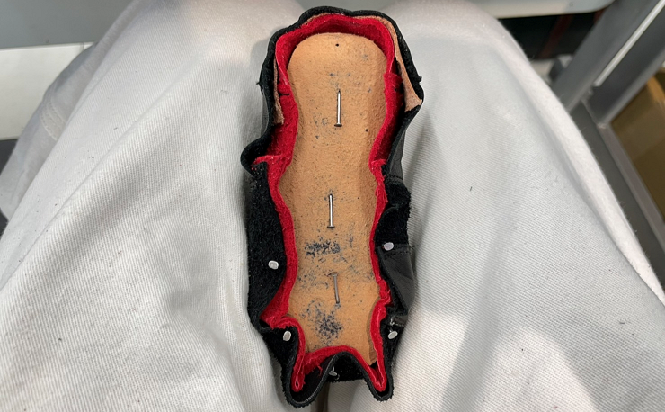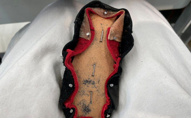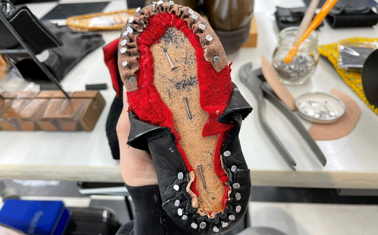 今回は、靴をつくる工程を実演したく、当日ベビーシューズでつりこみを行っておりました。