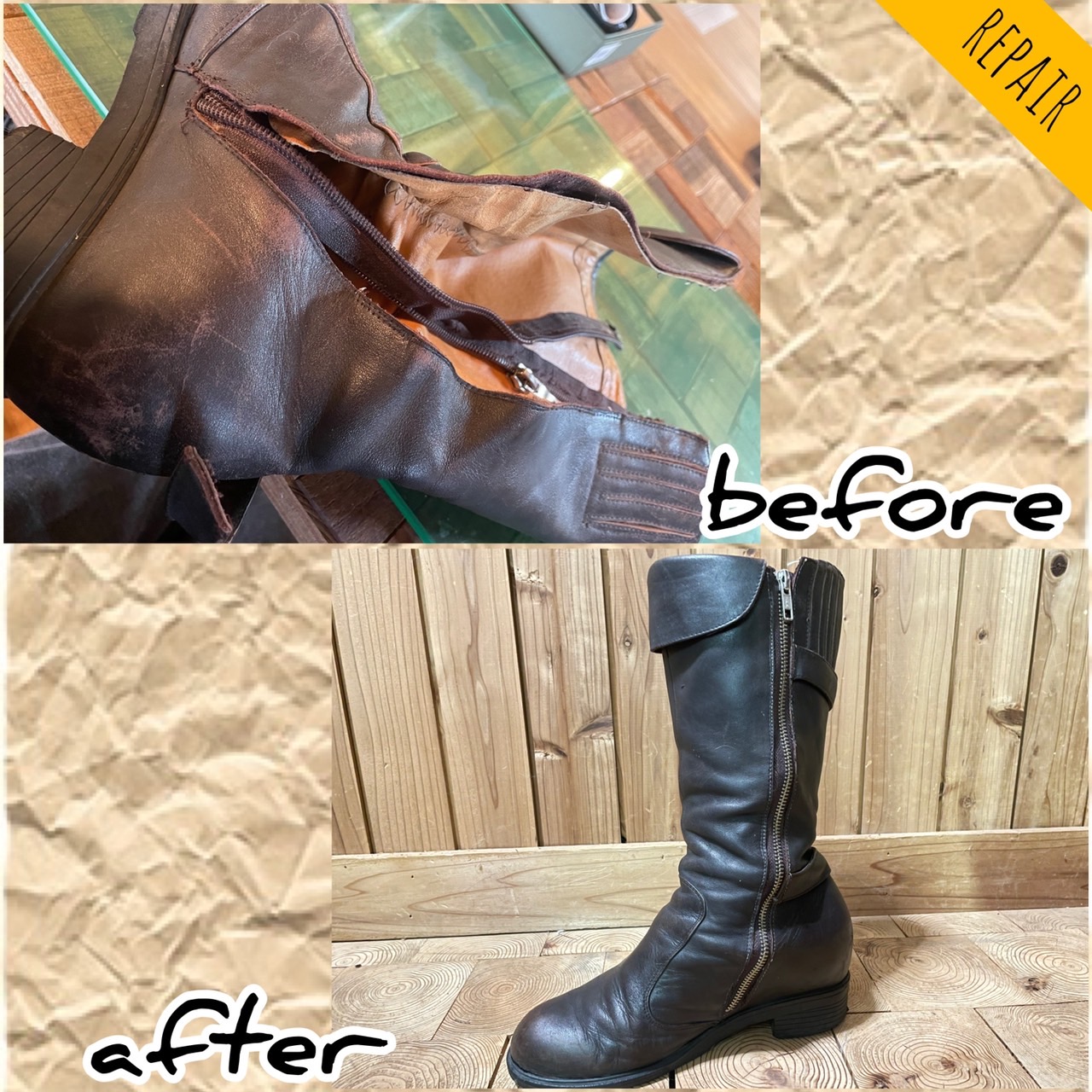 靴・革アイテムのリペアについてご案内します。